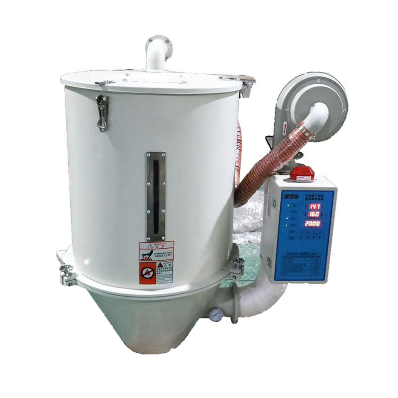 ເຄື່ອງອົບແຫ້ງພາດສະຕິກ 200KG ພັດລົມອຸນຫະພູມສູງຄົງທີ່ເຂົ້າໄປໃນກະບອກອົບແຫ້ງຜ່ານພັດລົມອົບແຫ້ງ. ຫຼັງຈາກວັດຖຸດິບຖືກອົບແລ້ວ, ຄວາມຊຸ່ມຊື້ນຕົ້ນສະບັບຂອງວັດຖຸດິບໃນຖັງໄດ້ຖືກເອົາໄປເພື່ອບັນລຸຈຸດປະສົງຂອງການກໍາຈັດຄວາມຊຸ່ມຊື່ນຂອງວັດຖຸດິບ.
